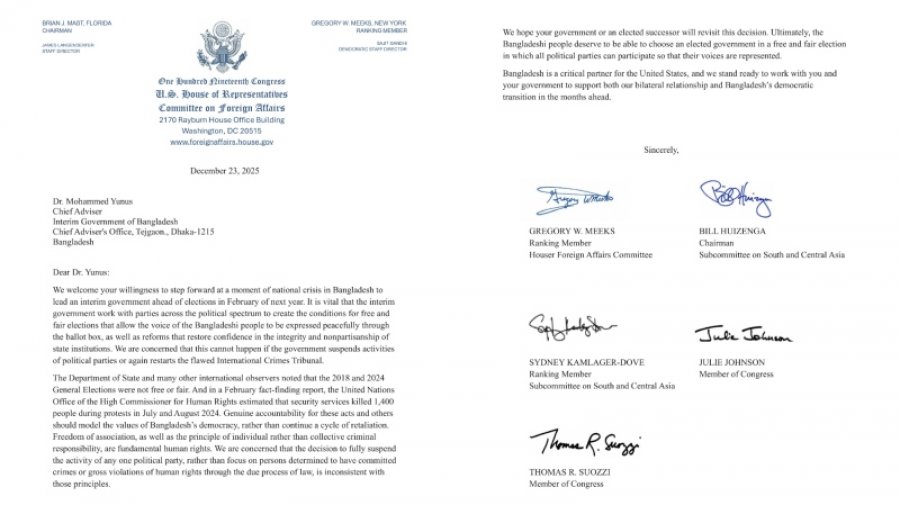 মেলবোর্ন, ২৪ ডিসেম্বর- বাংলাদেশে অবাধ, সুষ্ঠু ও অন্তর্ভুক্তিমূলক নির্বাচন নিশ্চিত করার আহ্বান জানিয়ে অন্তর্বর্তী সরকারের প্রধান উপদেষ্টা ড. মুহাম্মদ ইউনূসকে চিঠি দিয়েছেন যুক্তরাষ্ট্রের কংগ্রেসের কয়েকজন…