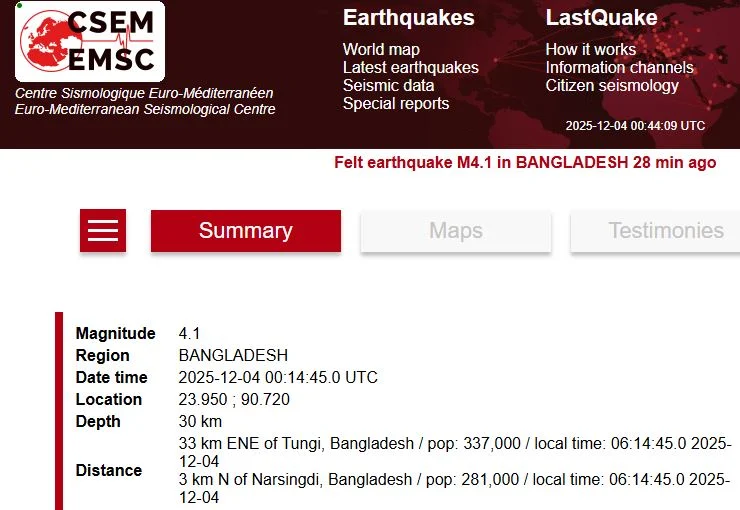 মেলবোর্ন, ৪ ডিসেম্বর- রাজধানী ঢাকায় বৃহস্পতিবার ভোরে হালকা ভূমিকম্প অনুভূত হয়েছে। সকাল ৬টা ১৫ মিনিটে কয়েক সেকেন্ডের জন্য এ কম্পন টের পান বিভিন্ন এলাকার বাসিন্দারা। বাংলাদেশ…