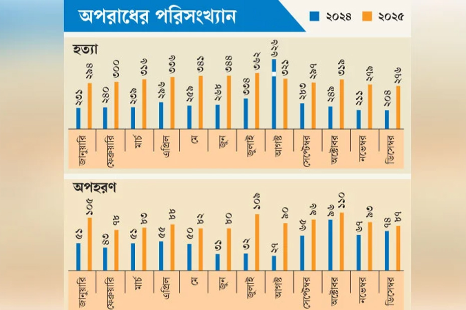 মেলবোর্ন, ১০ জানুয়ারি- বাংলাদেশে অপহরণের ঘটনা উদ্বেগজনক হারে বেড়েছে। পুলিশ সদরদপ্তরের অপরাধ পরিসংখ্যান বিশ্লেষণে দেখা গেছে, ২০২৫ সালে সারাদেশে অপহরণের ঘটনা ঘটেছে এক হাজার ১০২টি,…