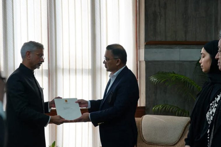 তারেক রহমানের হাতে শোকবার্তা তুলে দিলেন জয়শঙ্কর