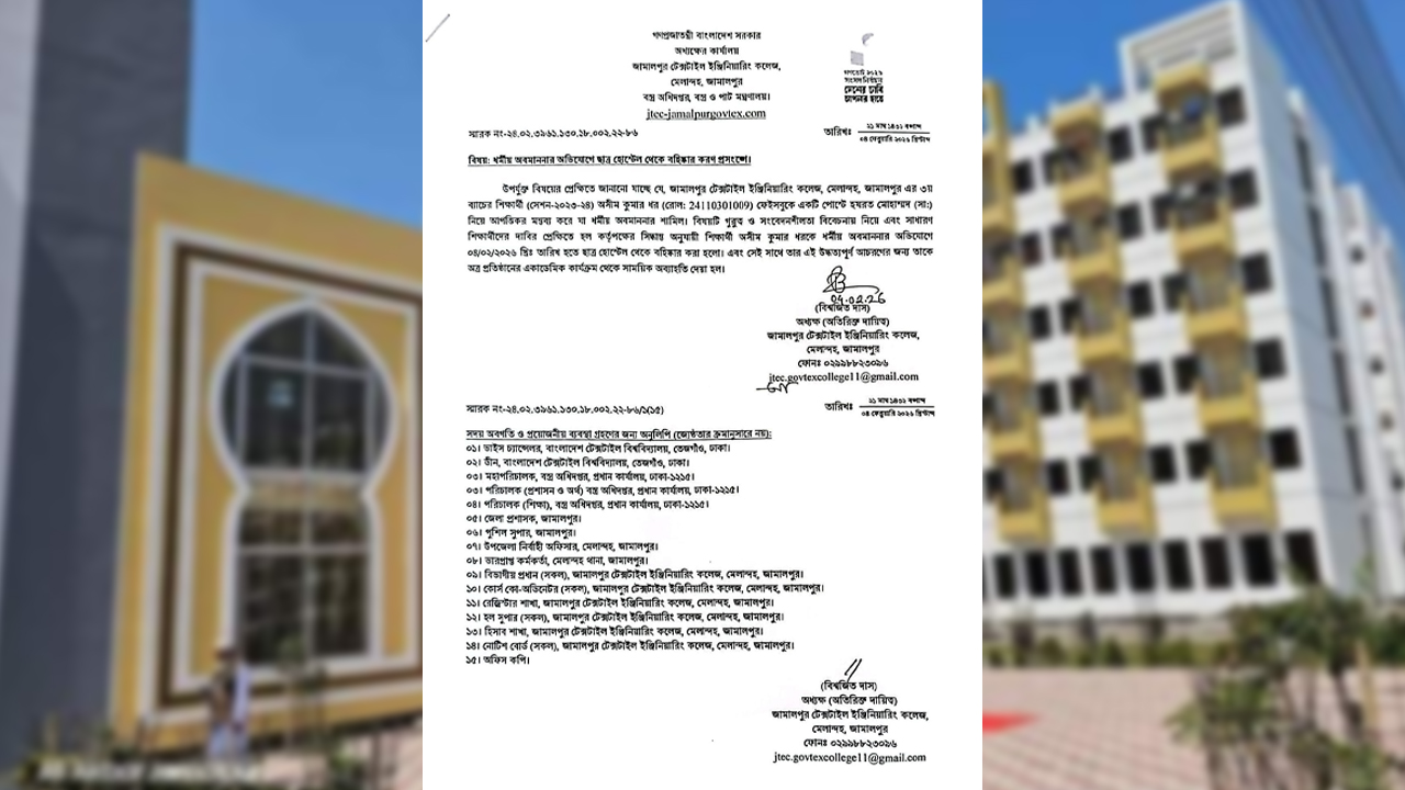 ‘ধর্ম অবমাননার’ কথিত অভিযোগে হিন্দু শিক্ষার্থীকে হল থেকে বহিস্কার, শিক্ষাপ্রতিষ্ঠান থেকে অব্যহতি