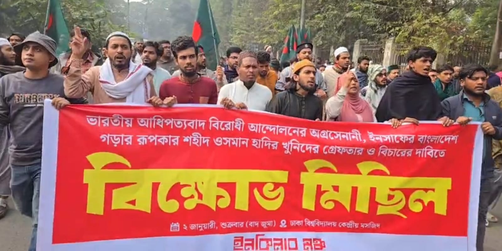 মেলবোর্ন, ২ জানুয়ারি- দুর্বৃত্তের গুলিতে নিহত ইনকিলাব মঞ্চের মুখপাত্র শরীফ ওসমান হাদি হত্যার বিচার দাবিতে ঢাকা বিশ্ববিদ্যালয়ের (ঢাবি) কেন্দ্রীয় মসজিদ থেকে শাহবাগে বিক্ষোভ মিছিল করেছে…